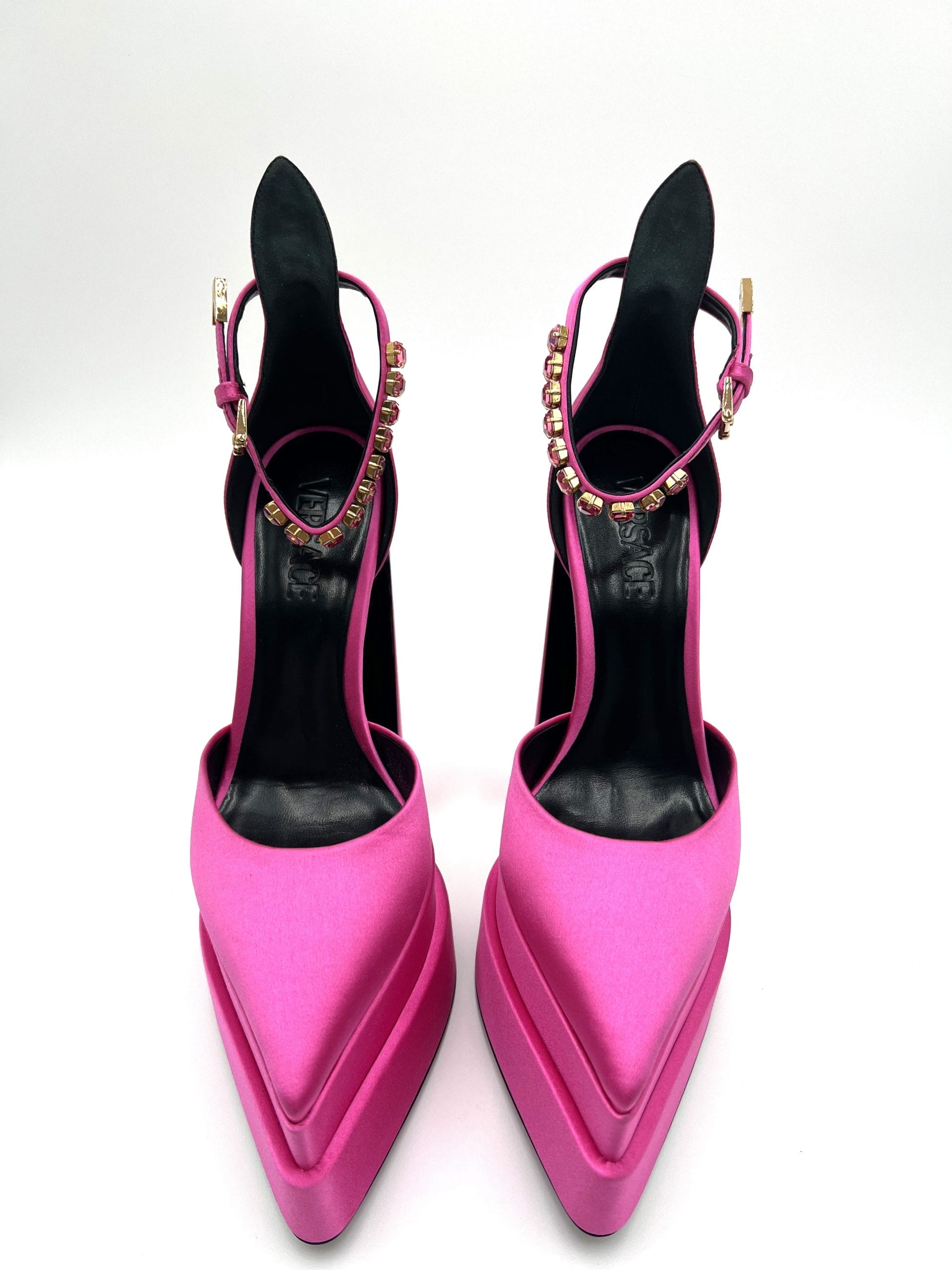 Brand: VersaceThese new, never worn, Versace platforms are from my personal collection that I simply never touched. Priced to sell, they make a beautiful statement and are sure to turn heads! We have labeled these in NEW condition as they have never been removed from their box. Box/dust bag/papers included.